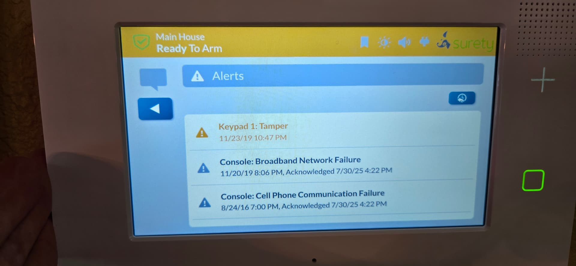 As far as the tamper switch, I checked it, and it appears to be working fine. Thatās when I noticed the tamper alarm coming on every 4 hours is from keypad 1, not the console. Oddly enough, I donāt have a keypad 1. I did check in the configuration, all keypads are disabled.