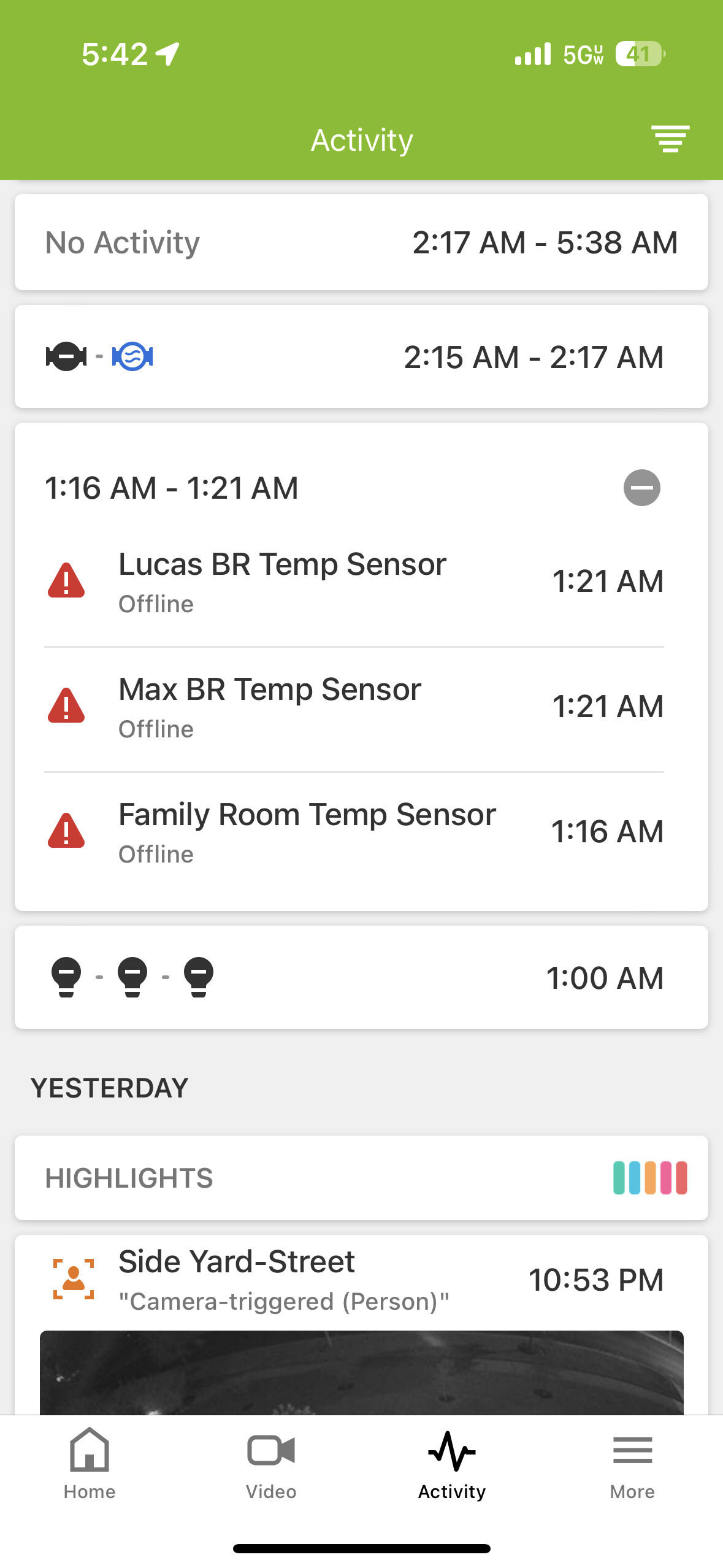 Looking at the history it appears there are two instances of offline reported since 8/24 for three of the sensors.