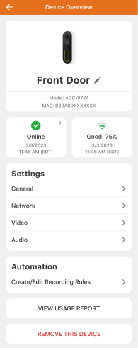 - The Video Device Settings and individual Device Overview pages allow you to check in on your cameras at a glance and zero in on issues quickly.