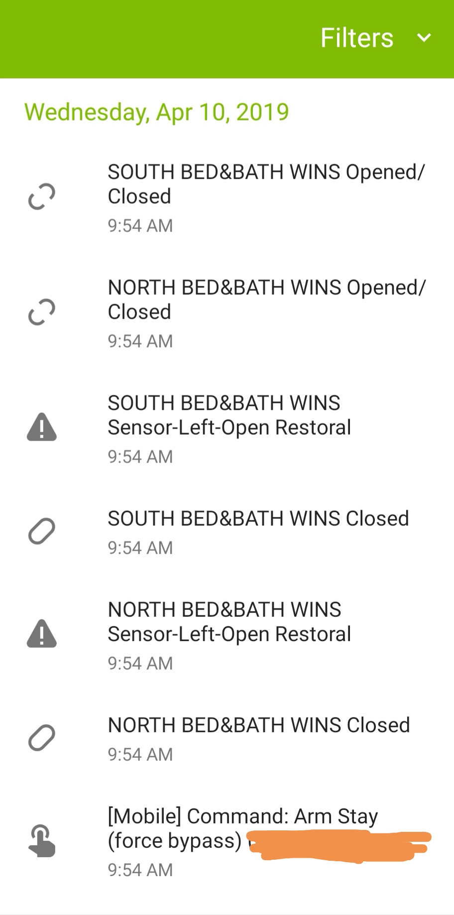 I was just playing around with the system a bit trying to investigate and found some interesting behavior. I began with the premise that the bypass was being entered like it is on the keypad. Since the bypass is usually not going through, I thought perhaps the user code was being interpreted as a bypass zone.