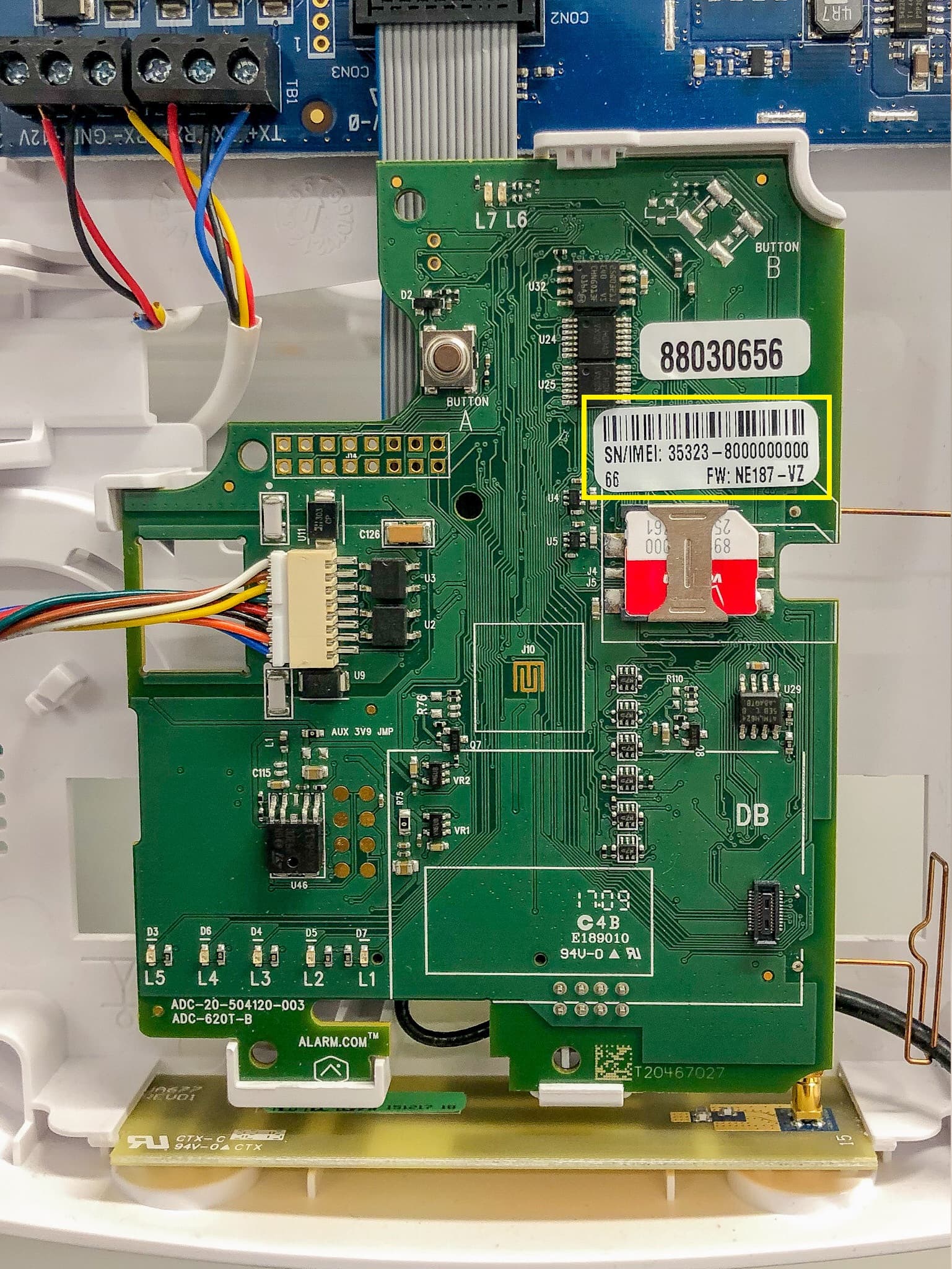 If you need to physically check, the module is installed in the side of the panel and can be revealed by lifting the module bay door off. You can find the 15-digit cellular module number on the module sticker.