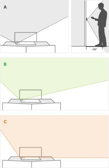 At the installation location, an angled mounting bracket can be used to modify the field of view. Choose a mounting bracket type best suited for your installation setup. Installation scenarios corresponding to mounting bracket types A, B, and C are provided below to guide your decision.