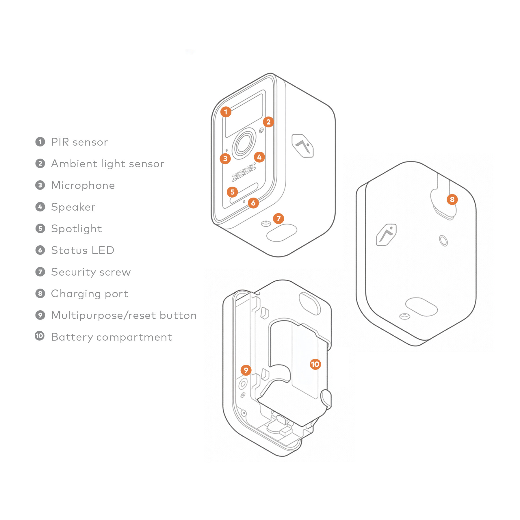 b. If the device is new or has not been previously associated with a network, the LED should begin blinking white to indicate it has entered pairing mode. If the LED is blinking white, replace the rear housing by pressing it together with the camera body, and proceed to the next section of the guide.