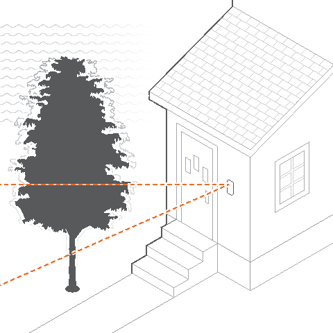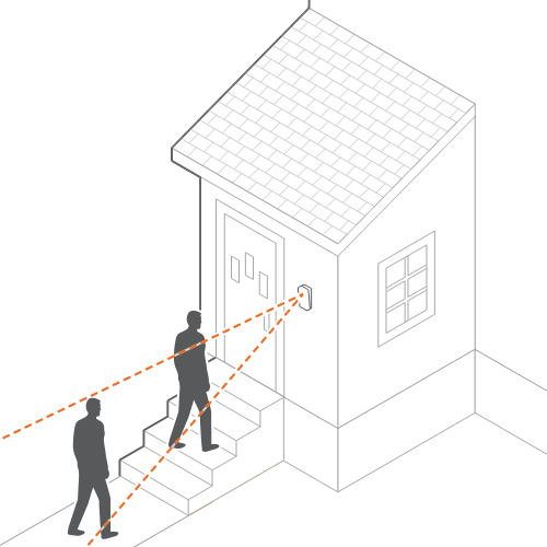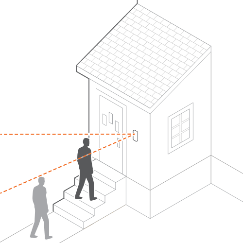 If the installation location has stairs or a ramp leading to the entryway, a tilt wedge will likely be needed to help focus the Wireless Video Doorbell on the visitors’ approach path.