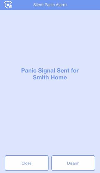 After pressing the panic button, a new screen pops up with a 3 second countdown and below the countdown is a Disarm button. Tap Disarm to negate the panic signal that was triggered.