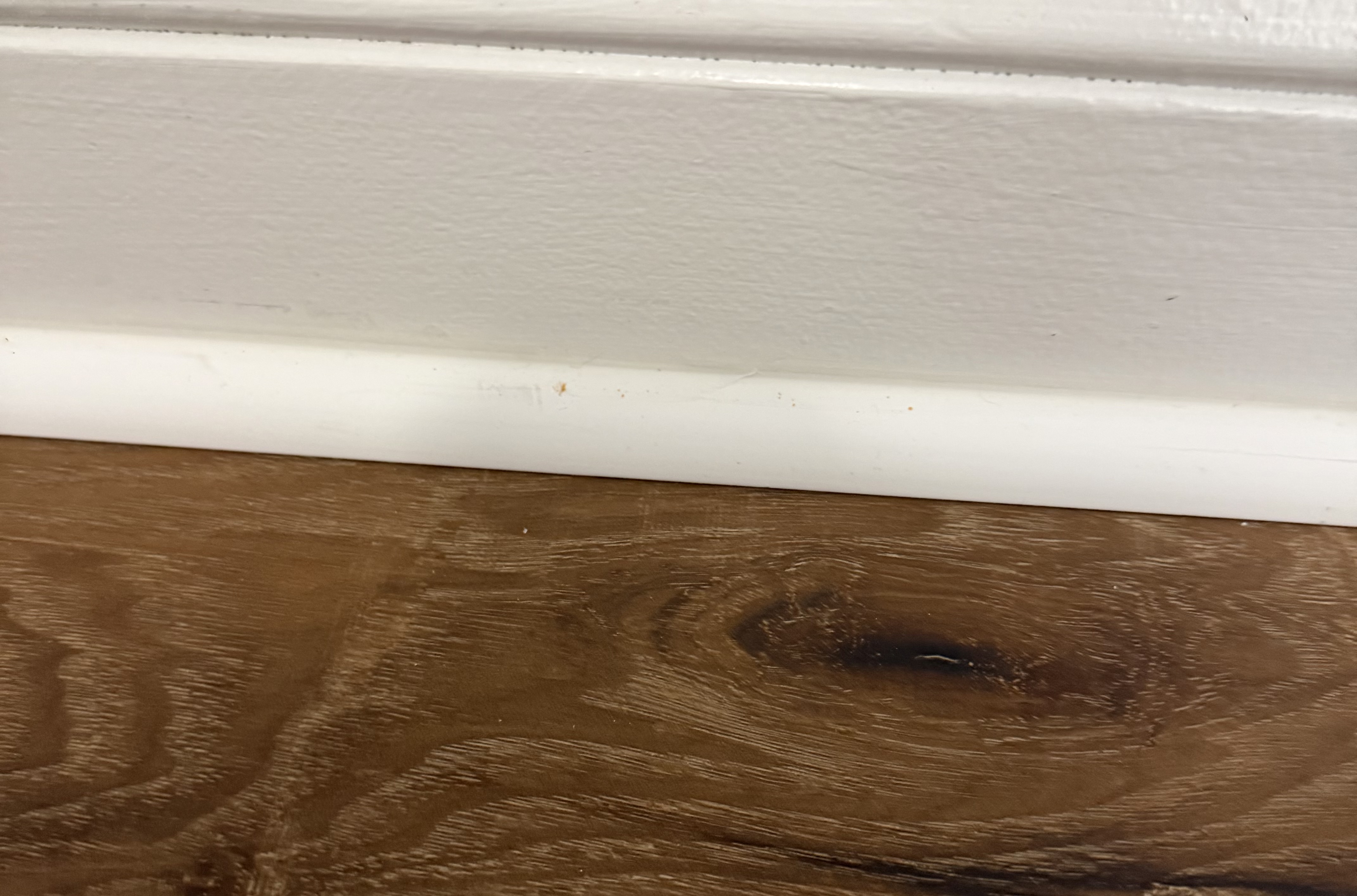 All of my floor is tile or hardwood, so not really able to screw it into the floor, and because of the curve of the quarter round at the floor, I can’t easily attach it to that either.