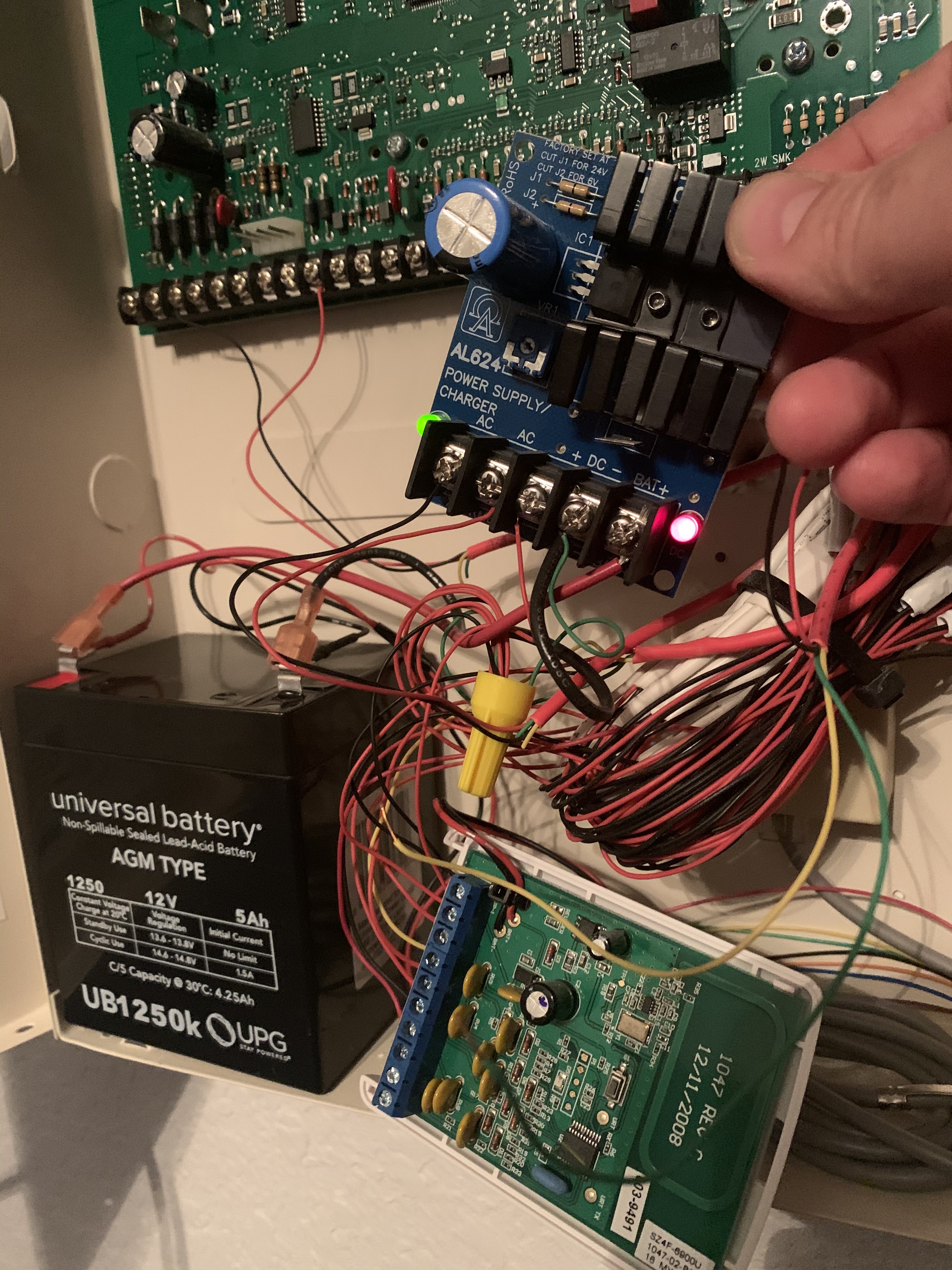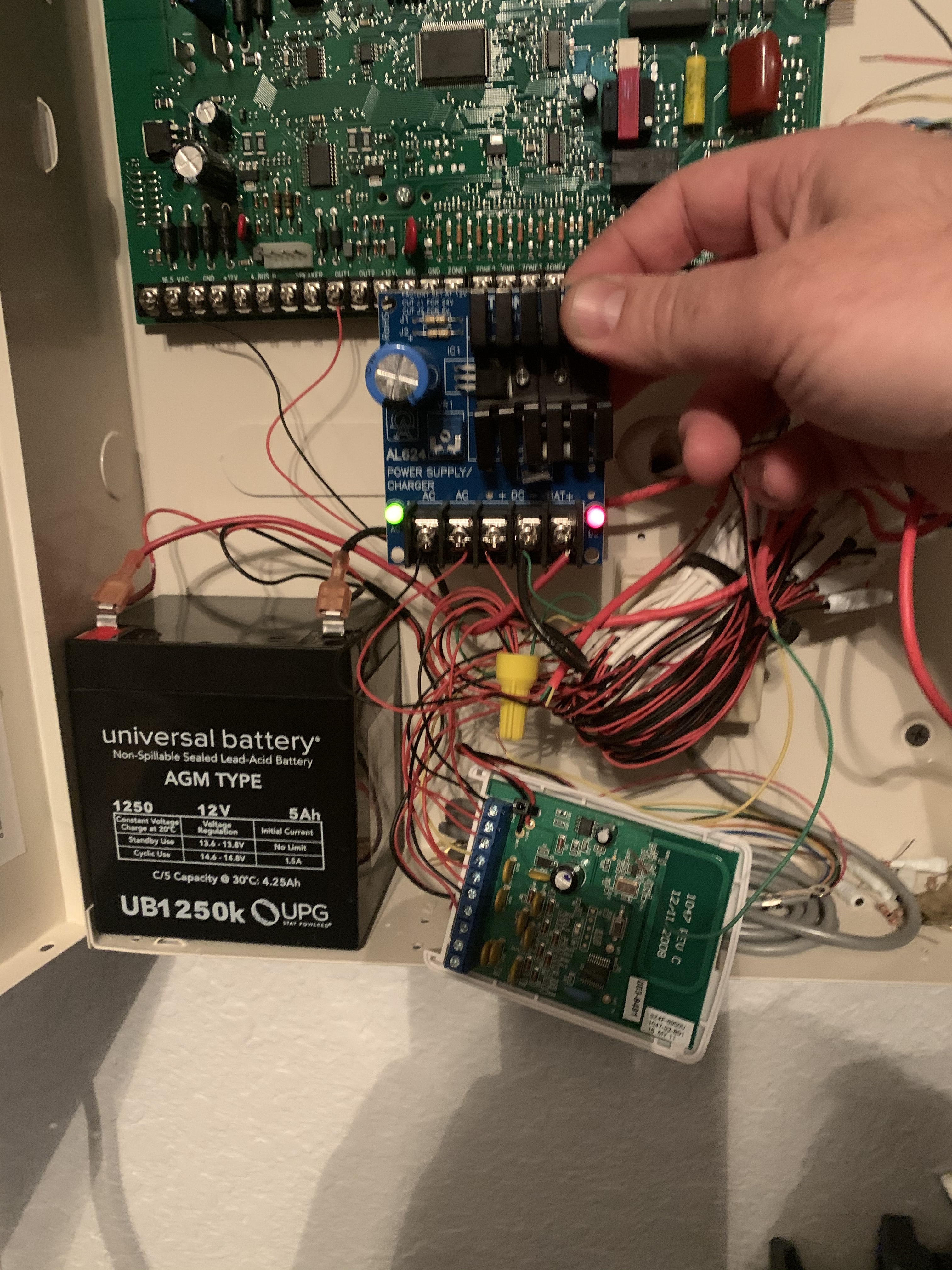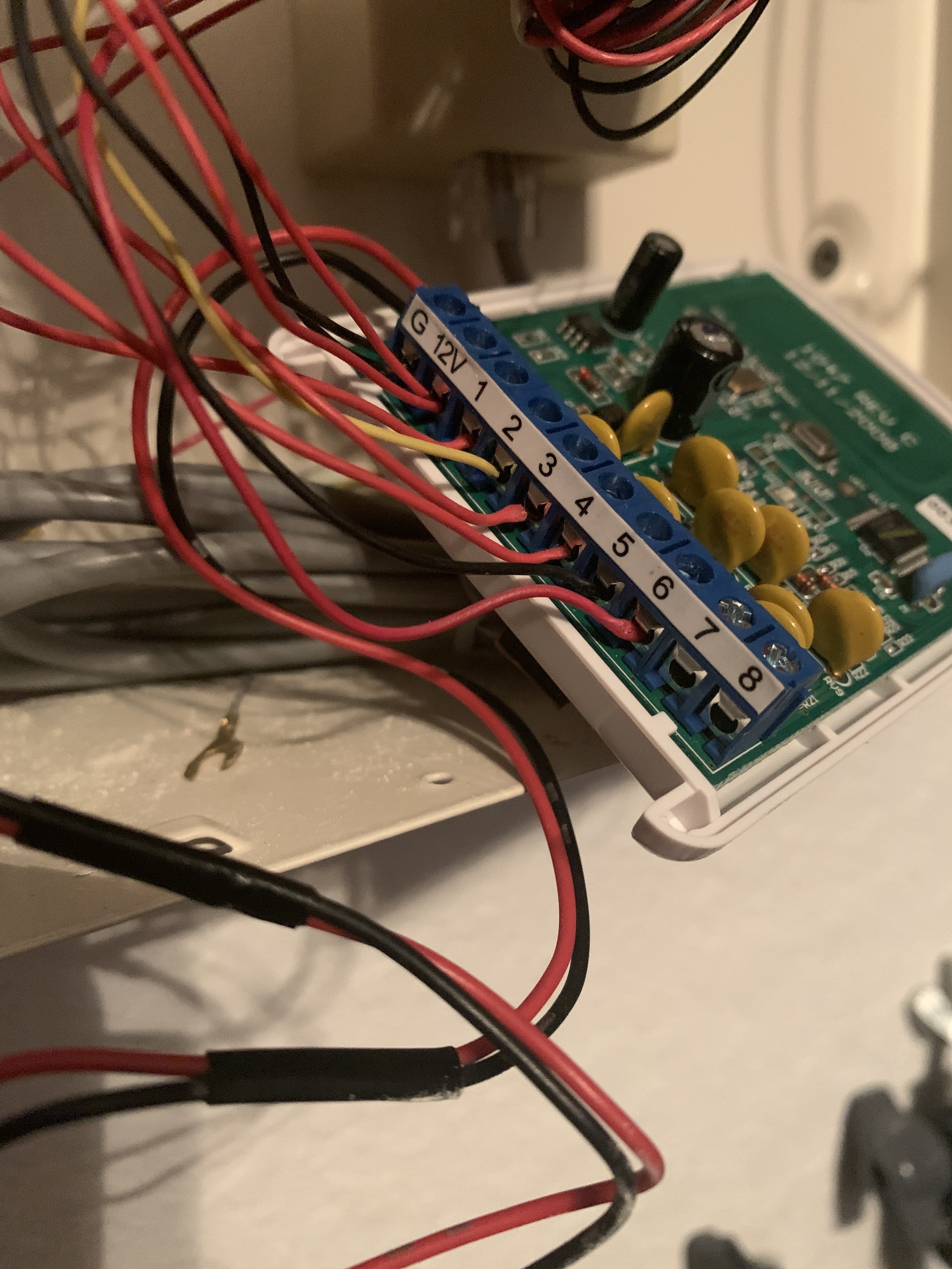 I keep getting low battery alerts on my take over devices which have no battery. Ive read up a bit on it and I unplugged my alarm panel battery and power from wall. Then replaced my battery thats hooked to the take over module. Also, along with the low battery alerts, I’m getting open window upstairs, there is no open window. Attached are pictures of my setup.