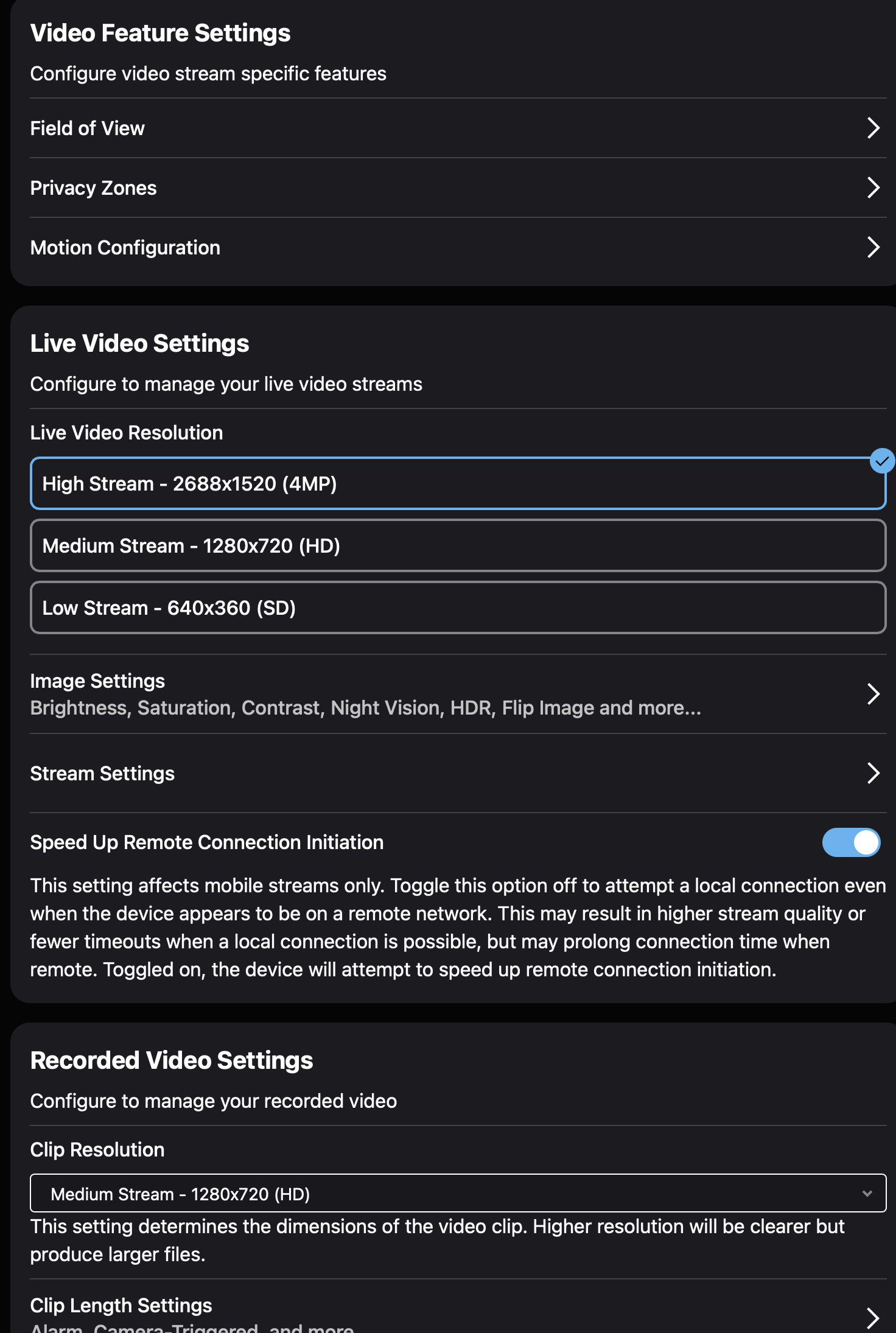 - While the camera claims to be 8mp I canāt see anyway to enable 8mp resolution. Unless it is only for the dVR recording. If you look at the video settings in the App this is what it shows: