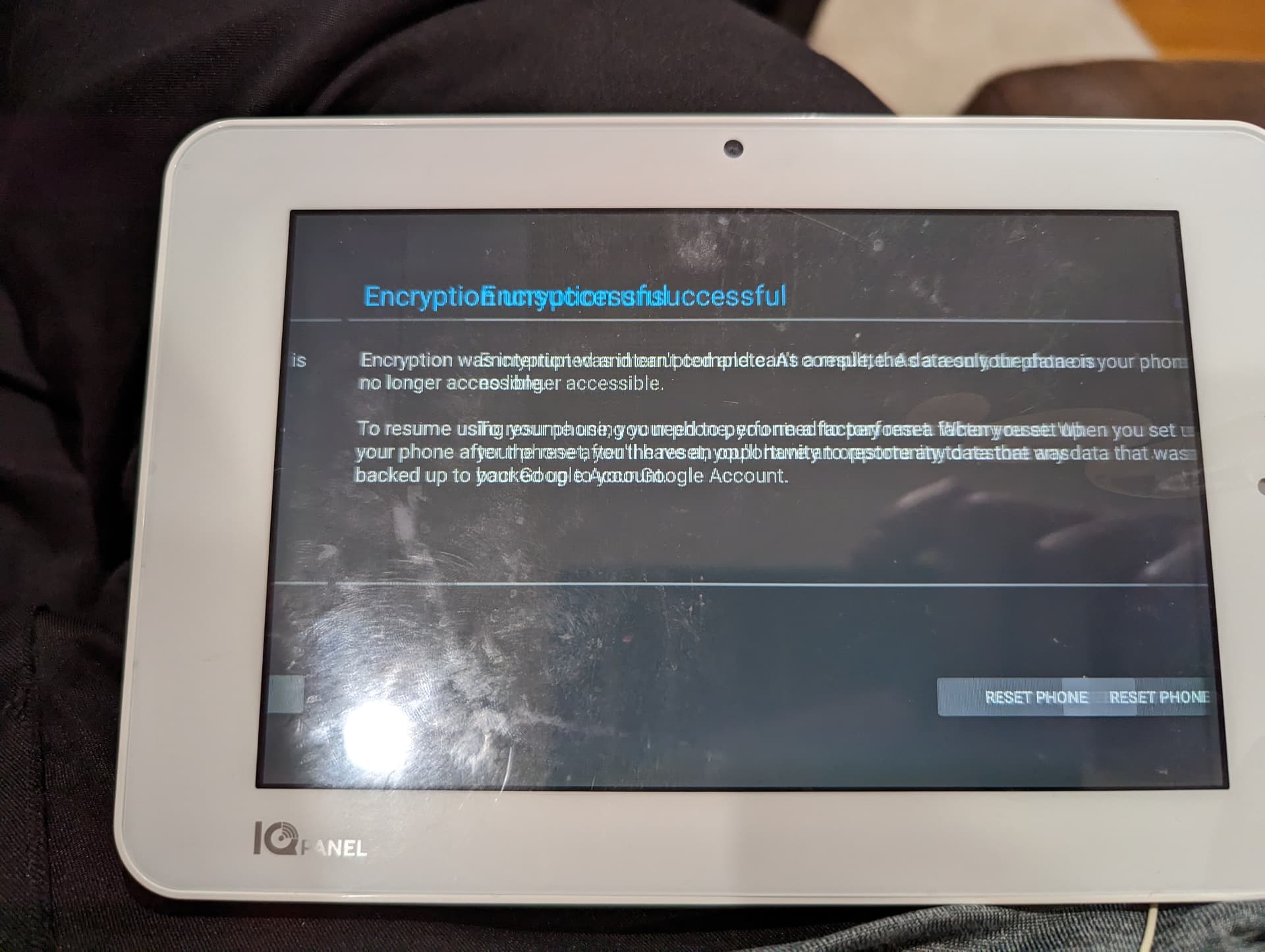 Anybody had an encryption error on their iq2. I can’t seem to get it to start and is stuck on this message.