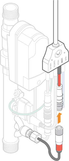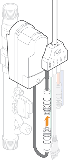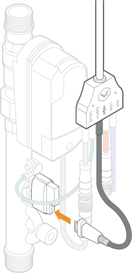 - Connect the cable harness to the valve+meter.