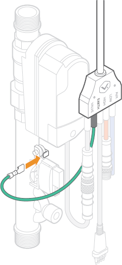B. Connect the green GROUND cable to the ground cable connection on the valve+meter.