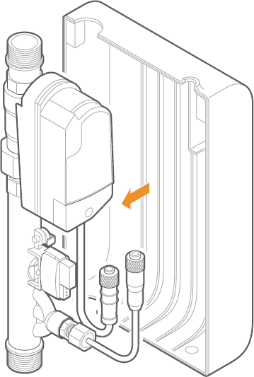 Important: Ensure that the device is installed in the correct orientation. An arrow embossed on the valve+meter indicates the correct direction of water flow.