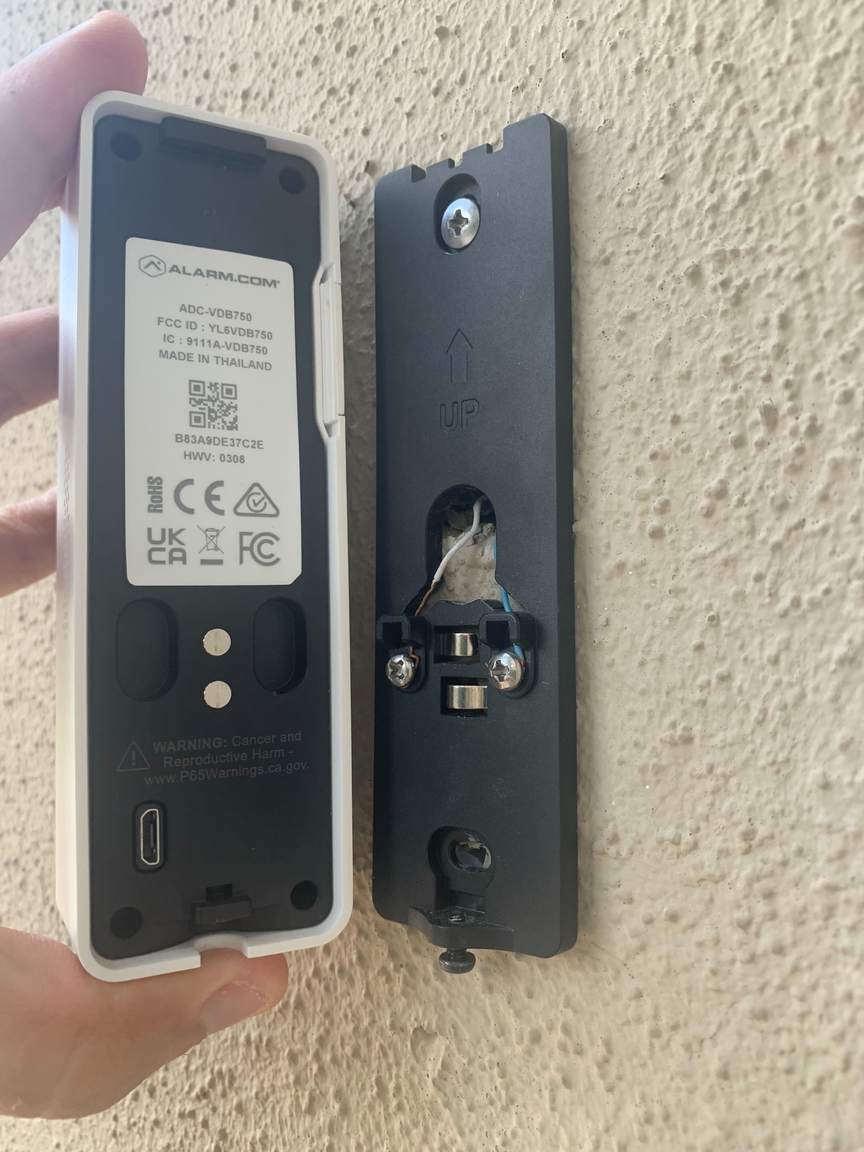 I am installing a VDB750 but experiencing connectivity issues with the wire. After installation, when I press the doorbell against the bracket, it will boot up. However, as soon as I release the pressure, it will power off. Here are some additional details: