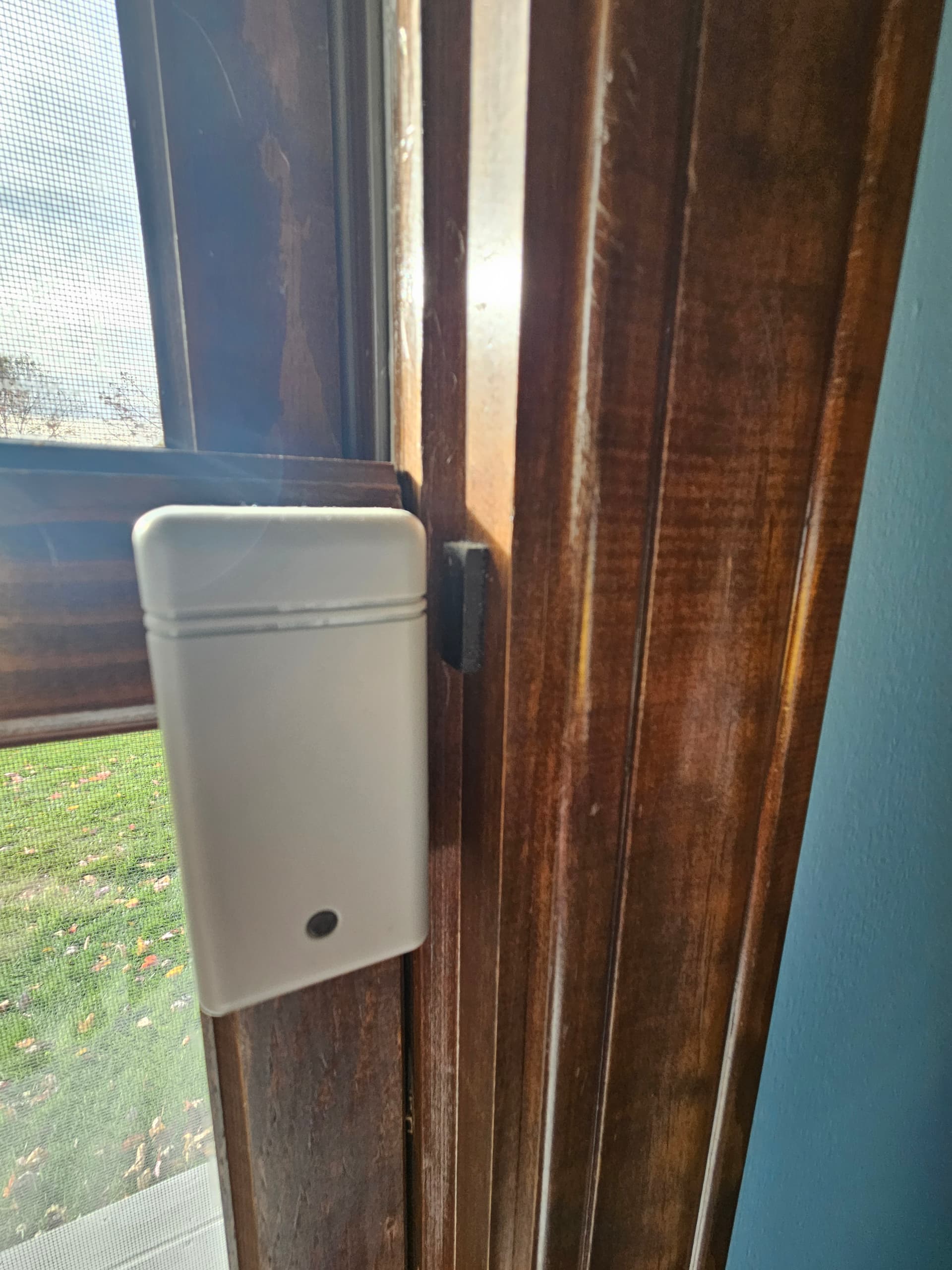 They also used the flat magnet on one of the doors. It tucks away nicely on the dark wood trim whereas the sensor is white and on the white door.